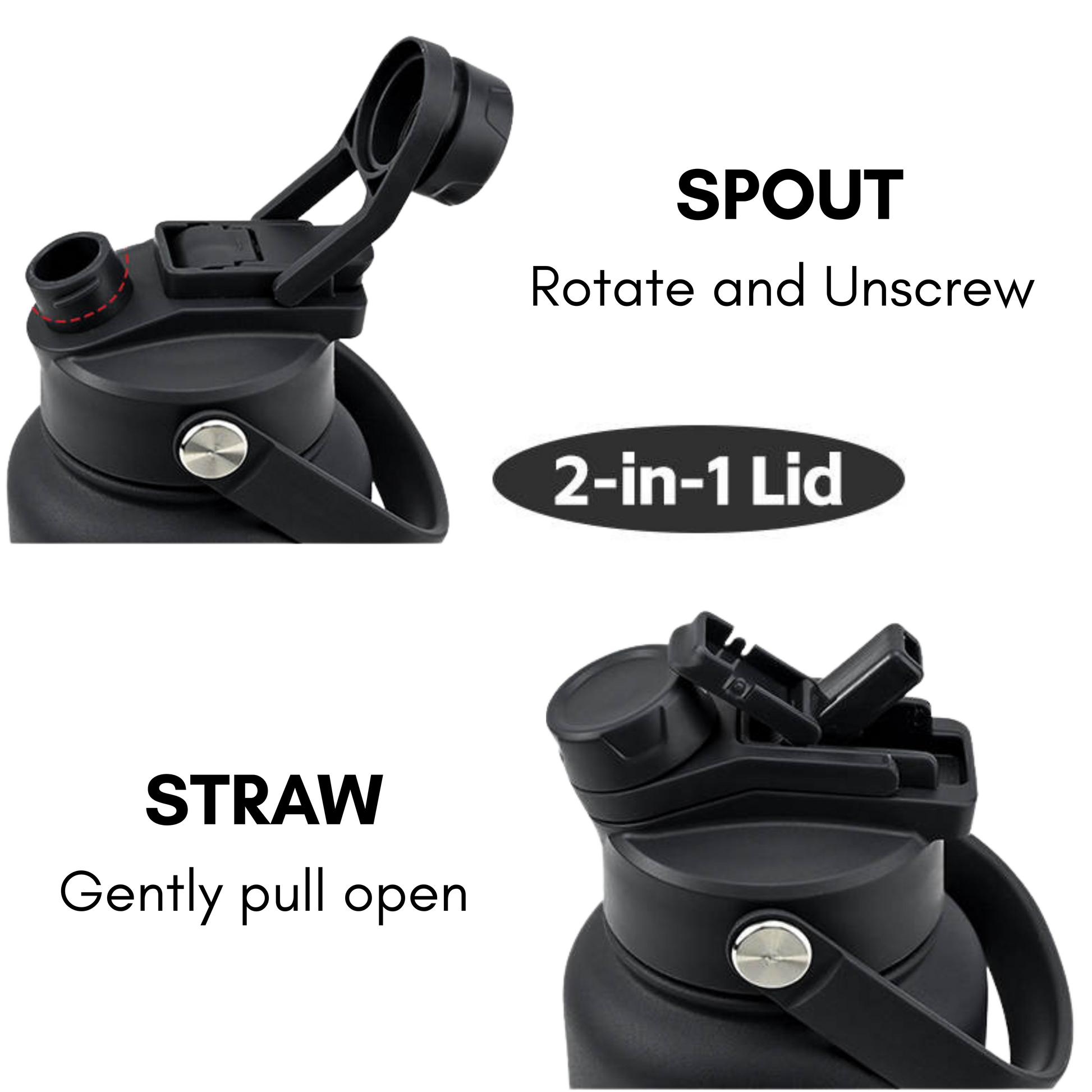 - 2-in-1 lid: Gently pull up the straw for sipping, or unscrew the spout for faster flow